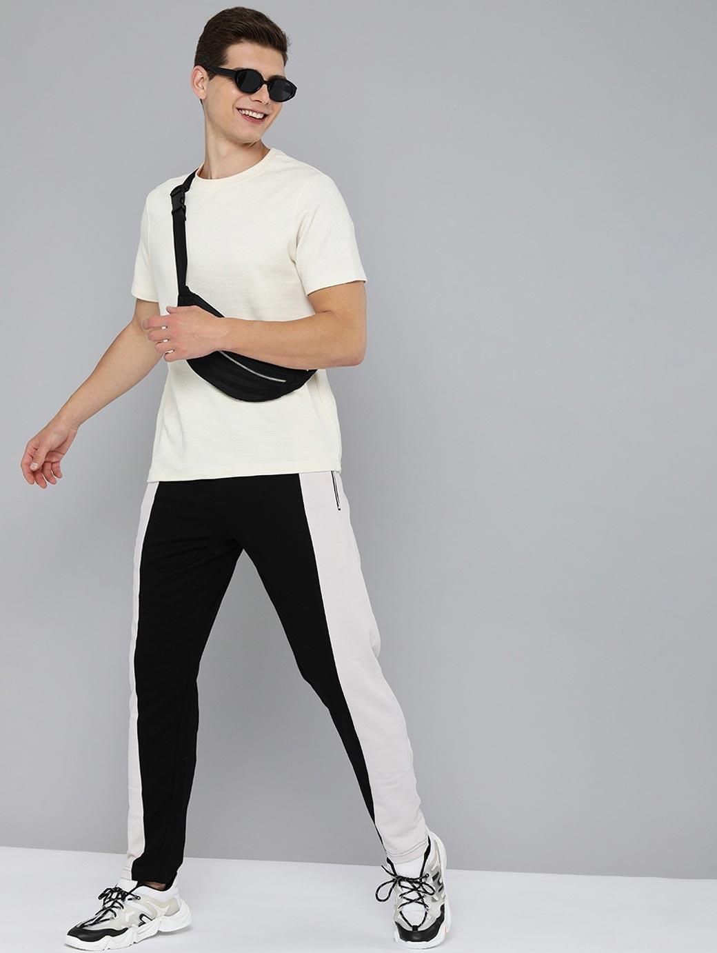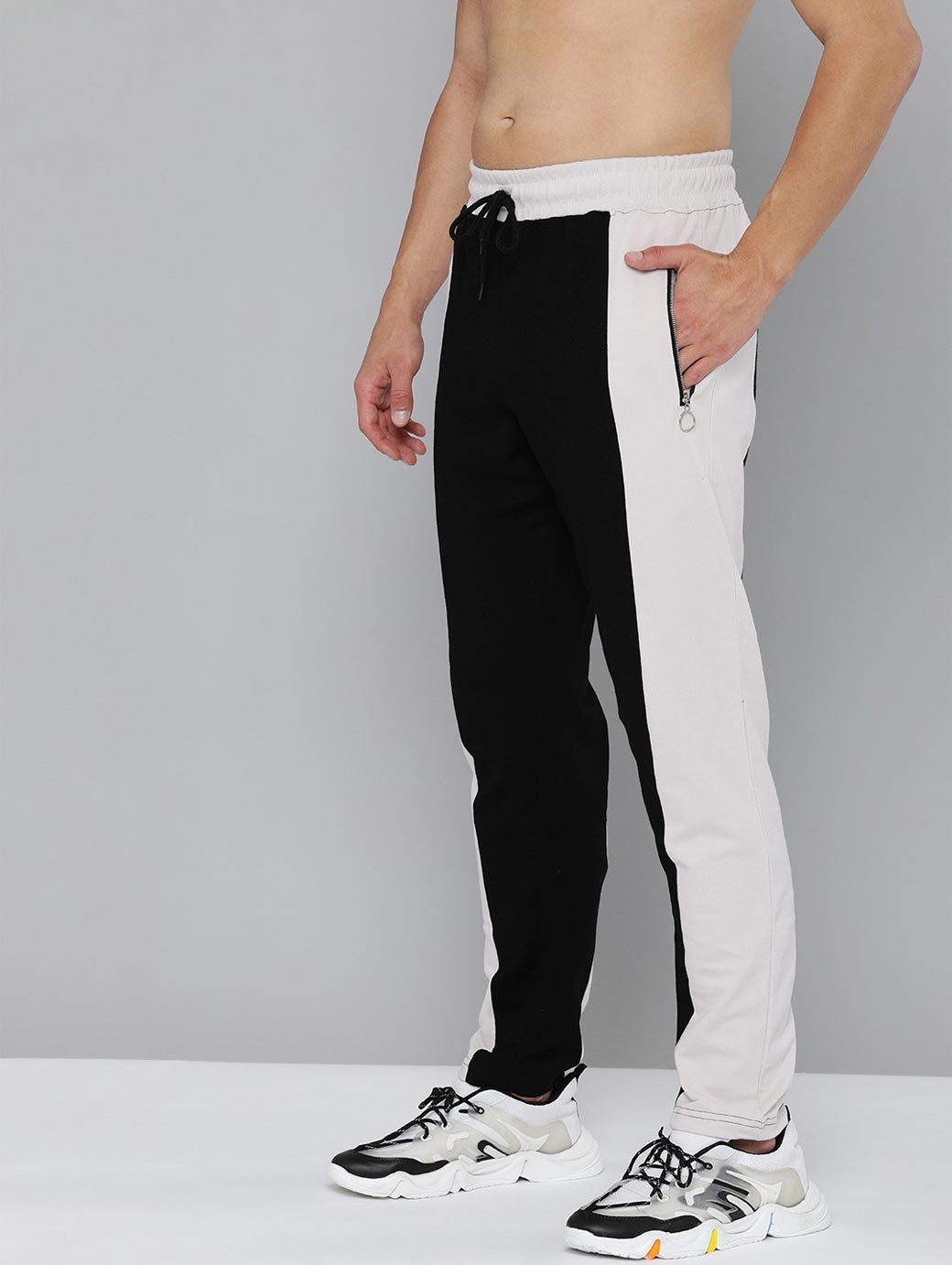 Men Black & White Pure Cotton Track Pants