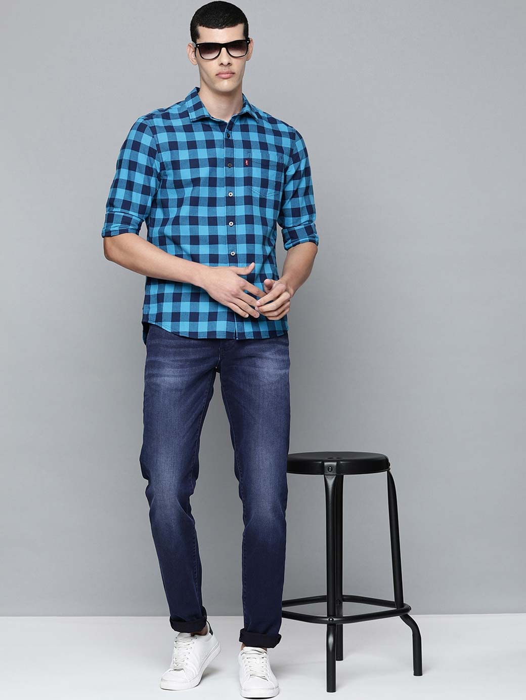 Medium shade, light fade blue jeans