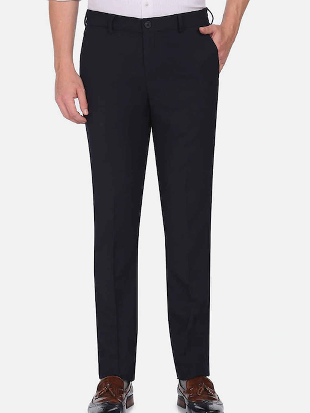 Men Blue Solid Slim Fit Cotton Formal Trousers