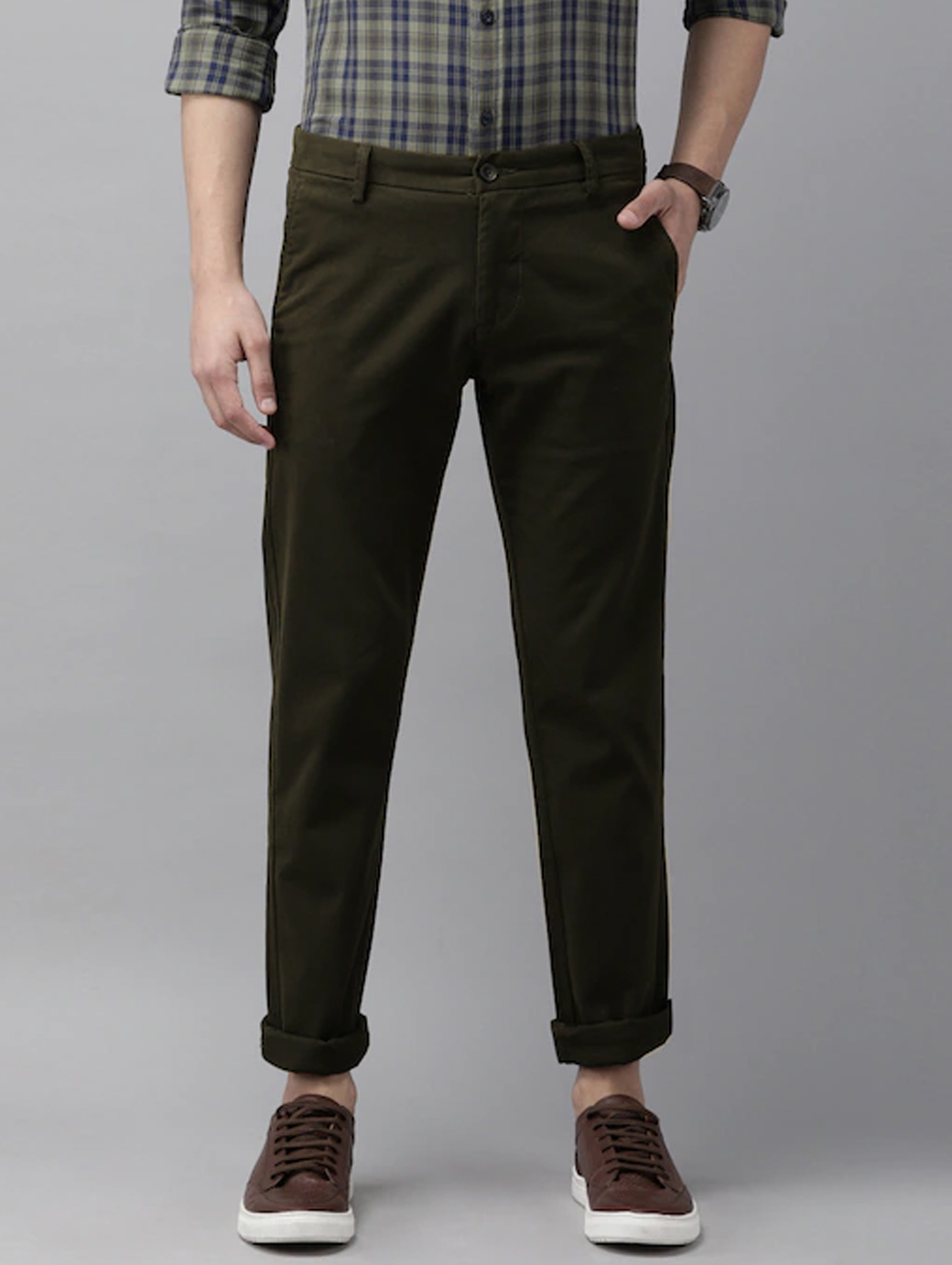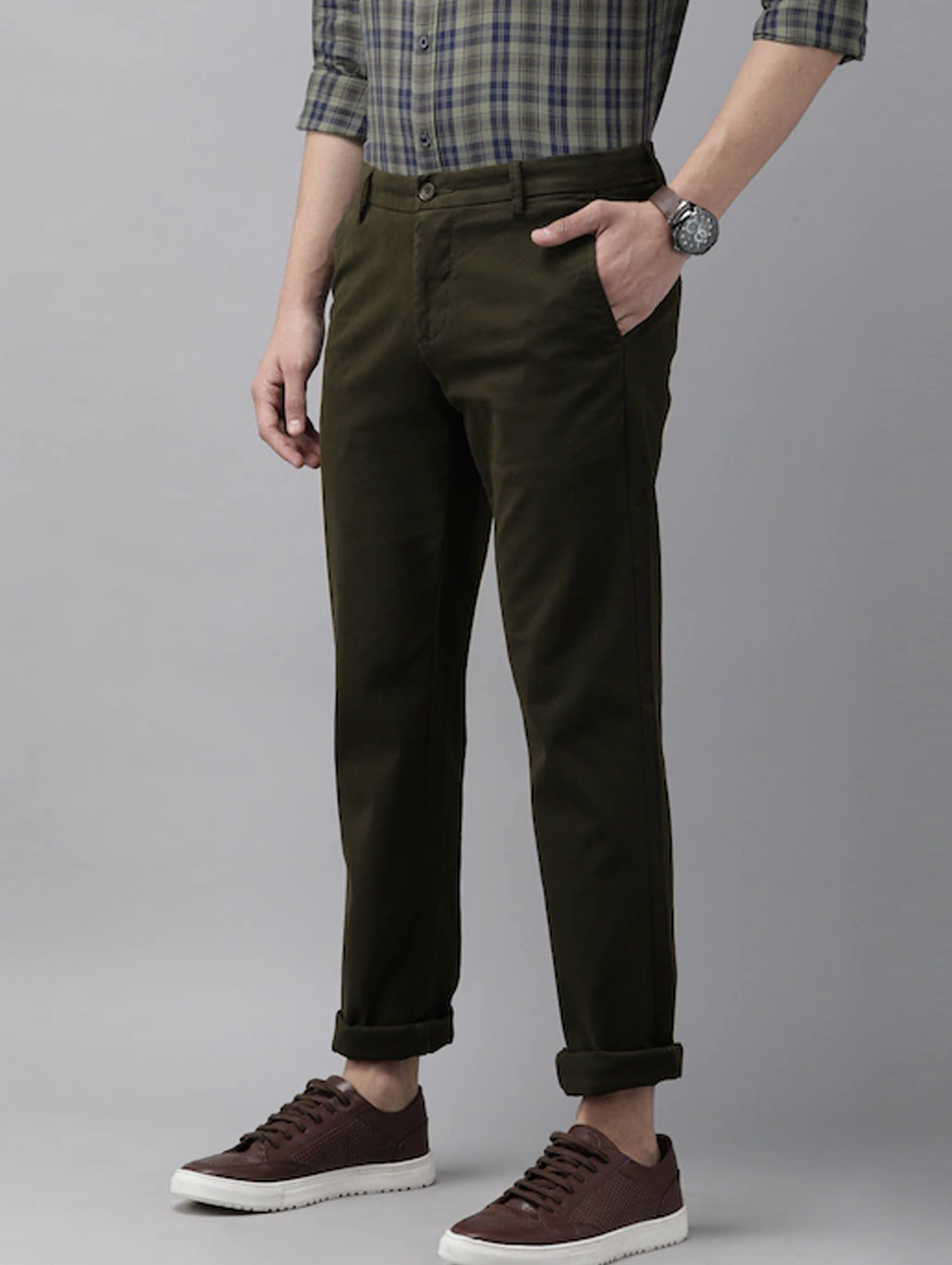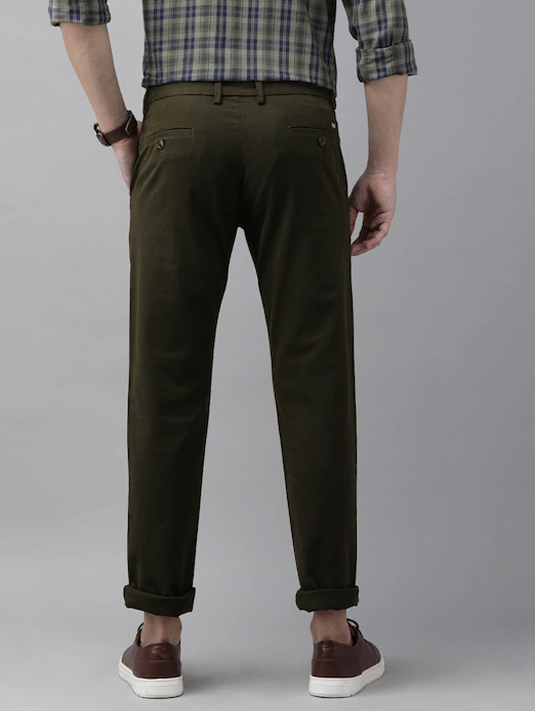 Casual trousers help you make an effortless statement. This pair features a flat front and is made with solid stretch cotton fabric.