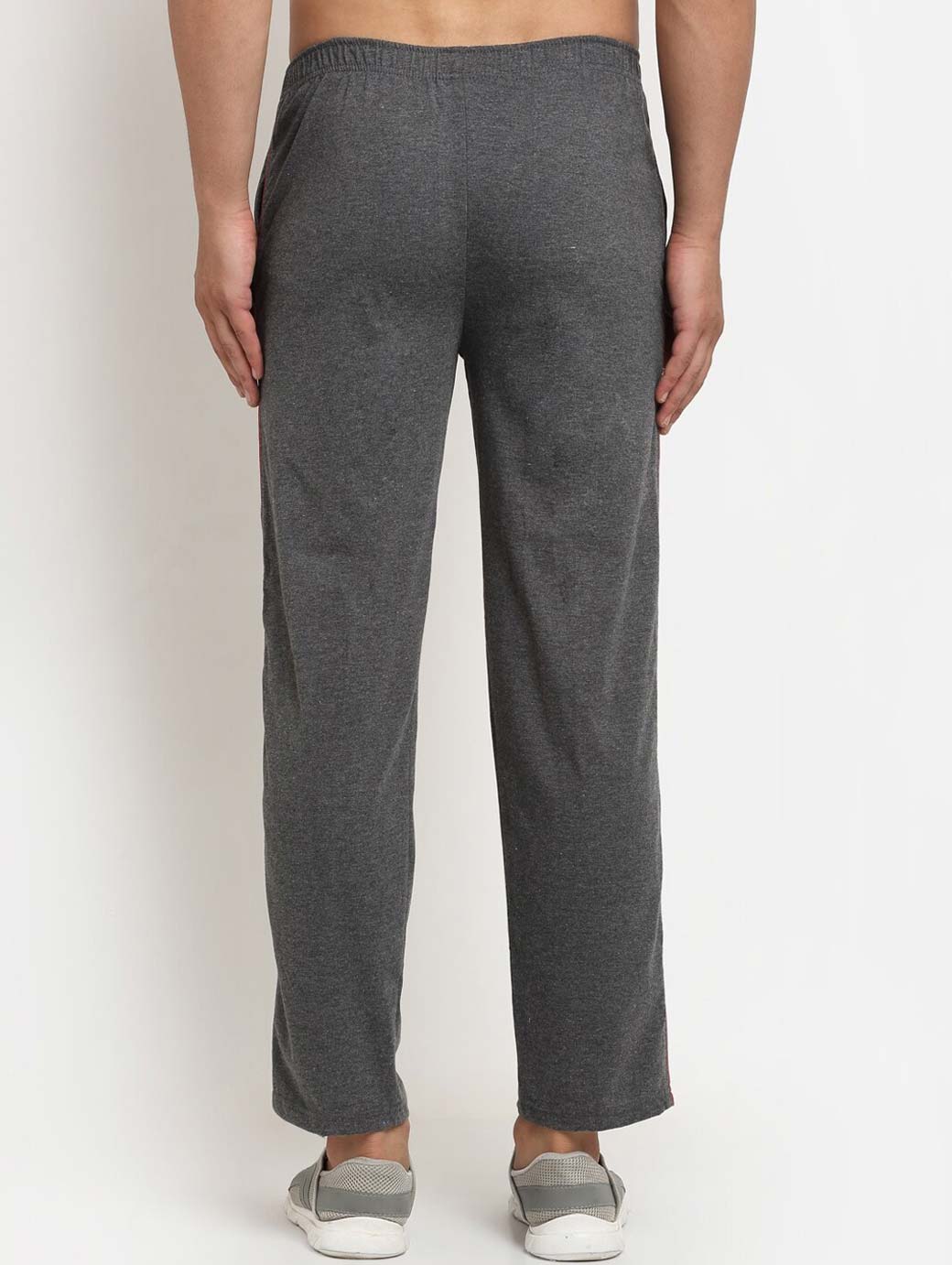 Grey solid regular-fit track pants, has an elasticated waistband with a drawstring closure and 2 pockets Black solid regular-fit track pants, has an elasticated waistband with a drawstring closure and 2 pockets