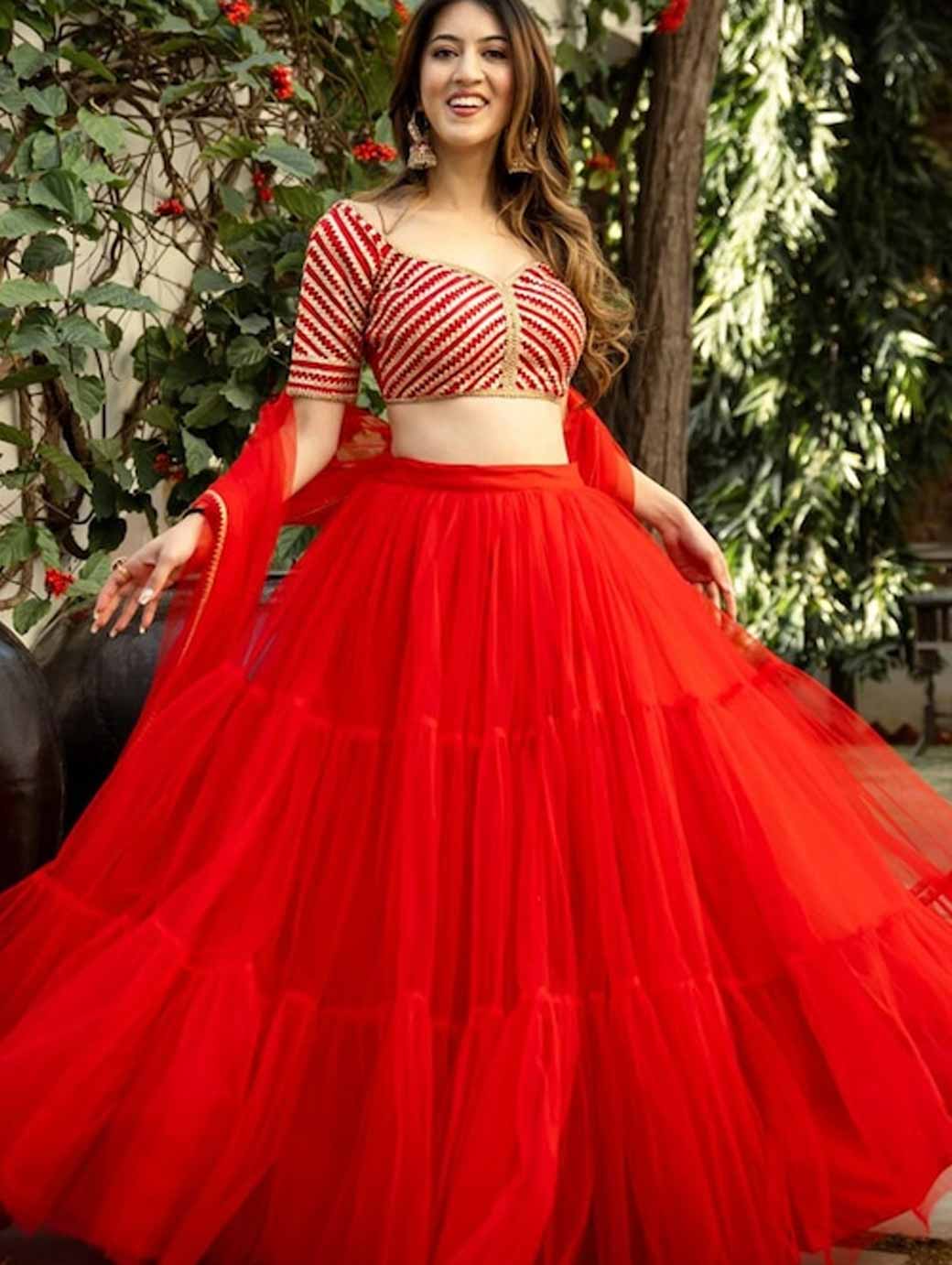 Red & Gold-Toned Embellished Ready to Wear Lehenga & Blouse With Dupatta