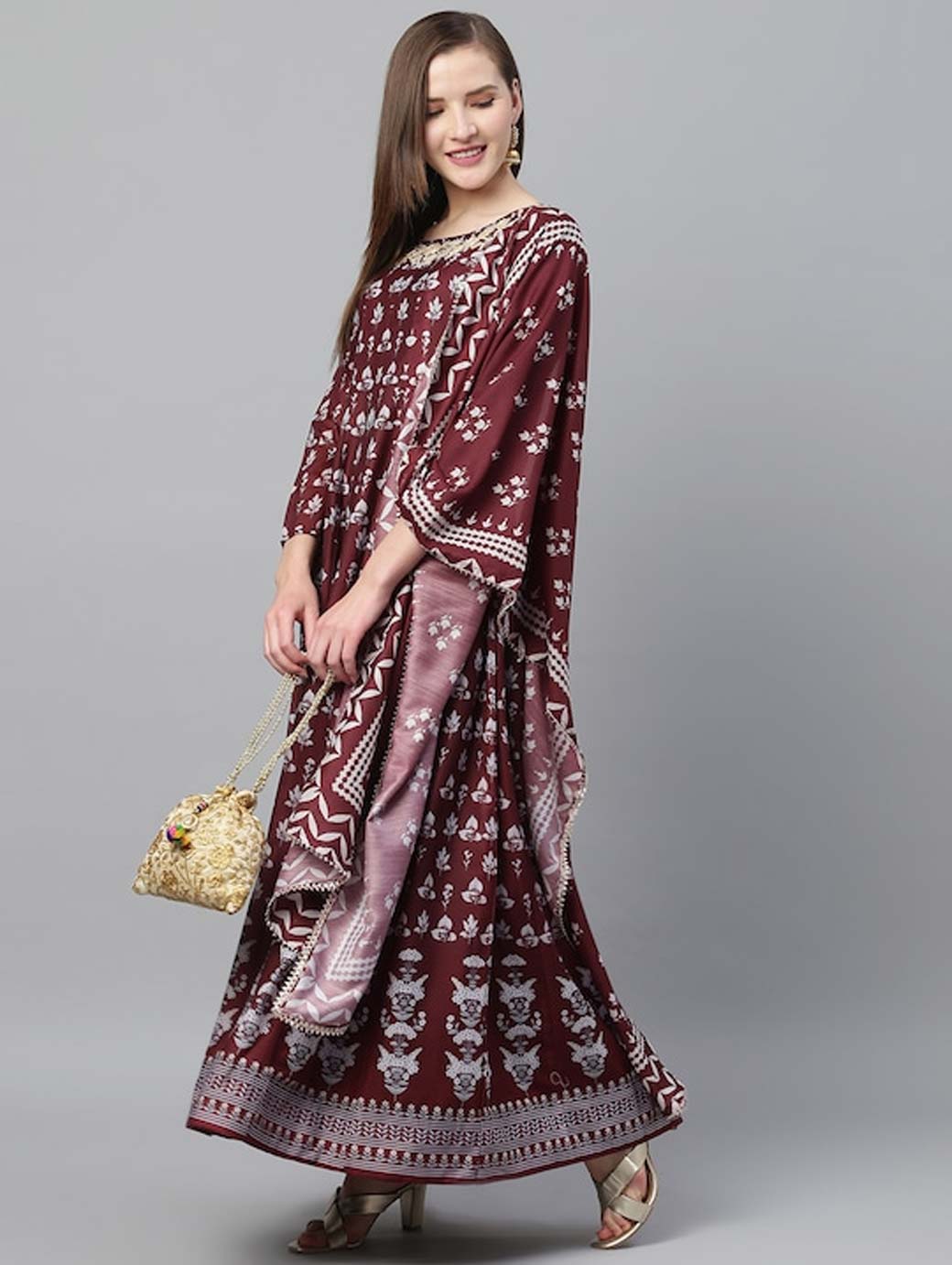 Beige colourblocked maxi dress, has a round neck, and flared hem