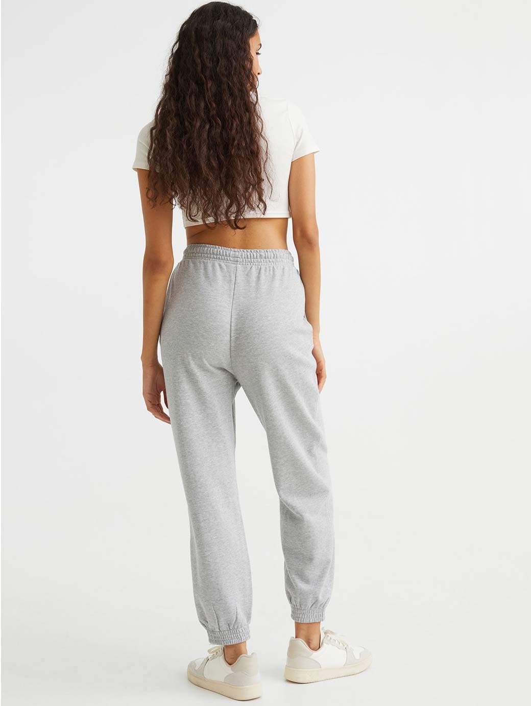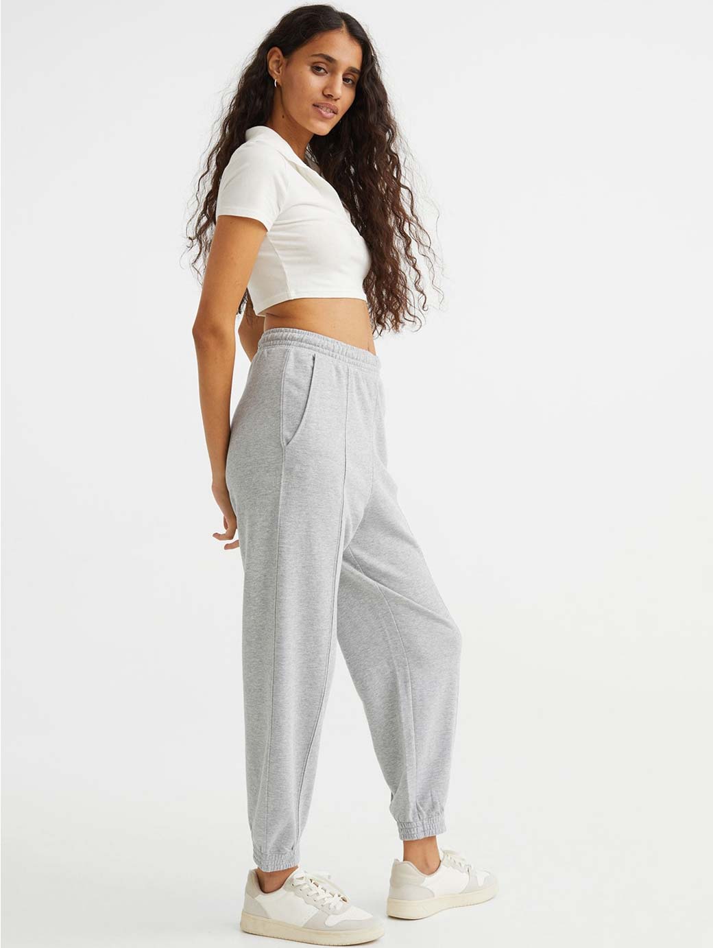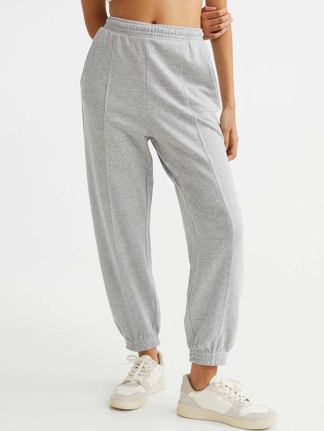 Oversized joggers in lightweight sweatshirt fabric made from a cotton blend. High waist with elasticated smocking, diagonal side pockets and legs with sewn-in creases and elasticated smocking at the hems.