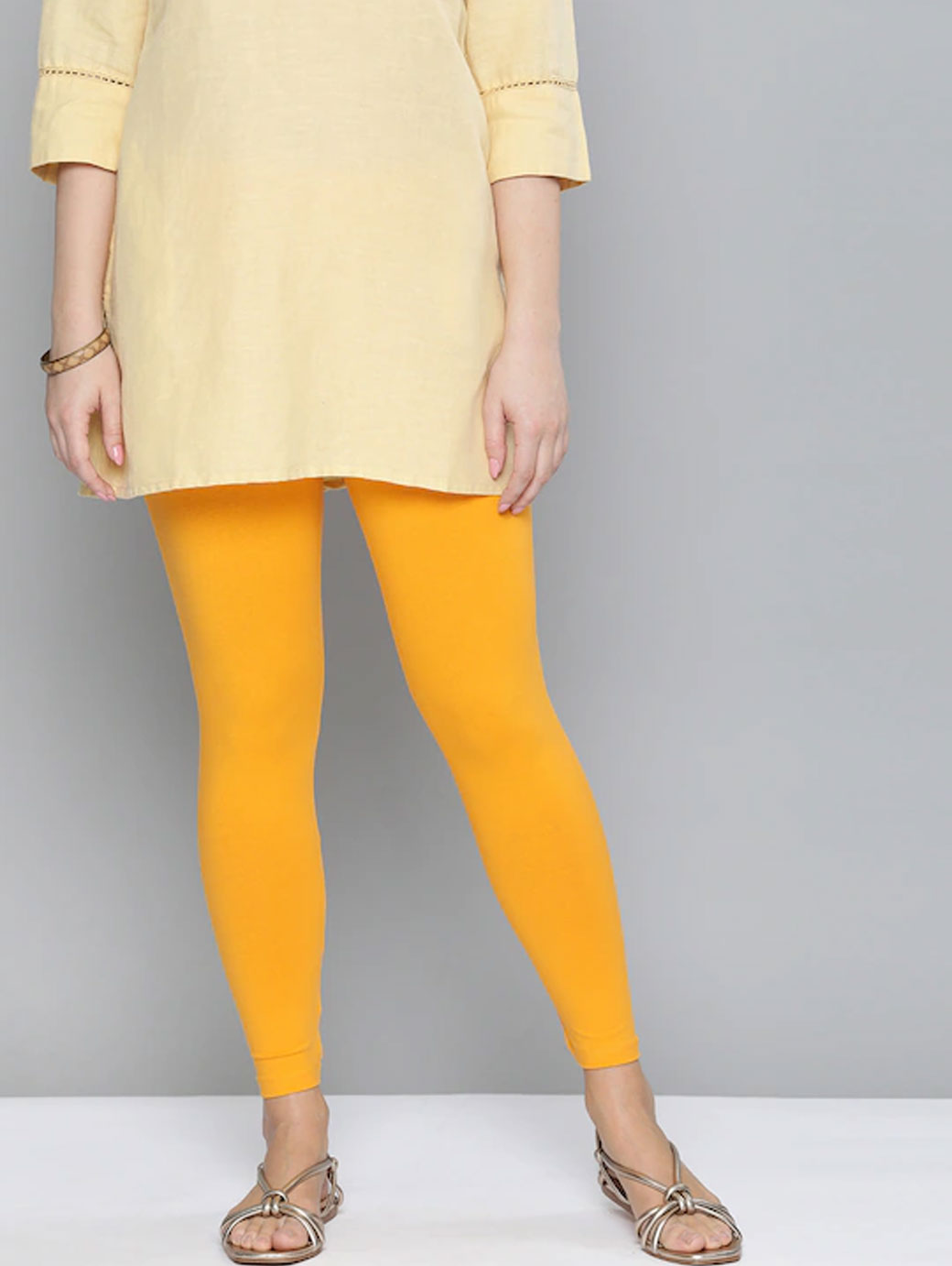 Women Yellow Solid Leggings